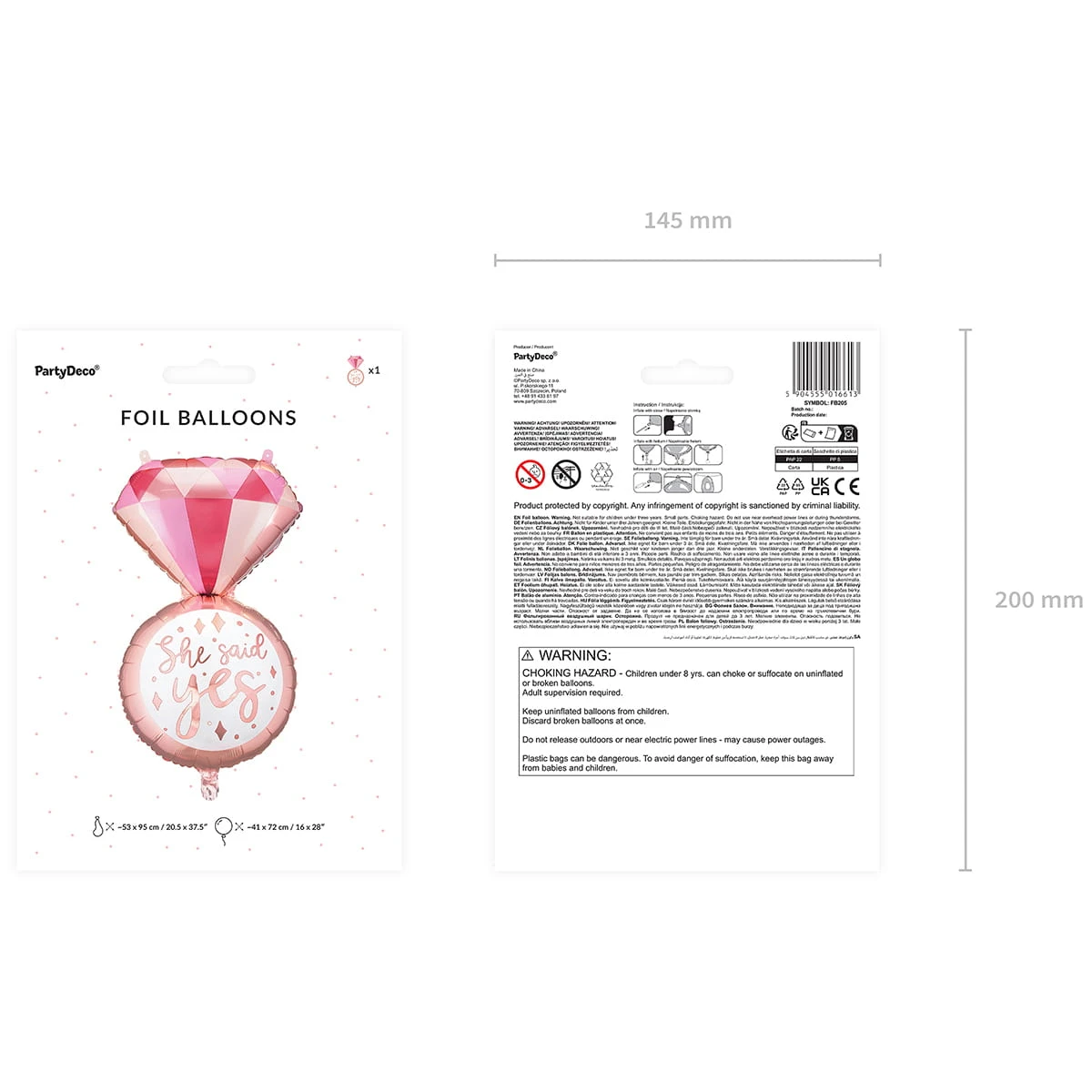 PartyDeco Balon foliowy Pierścionek, 41x72 cm, mix – dekoracyjny produkt wysokiej jakości