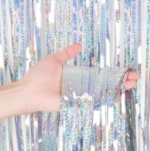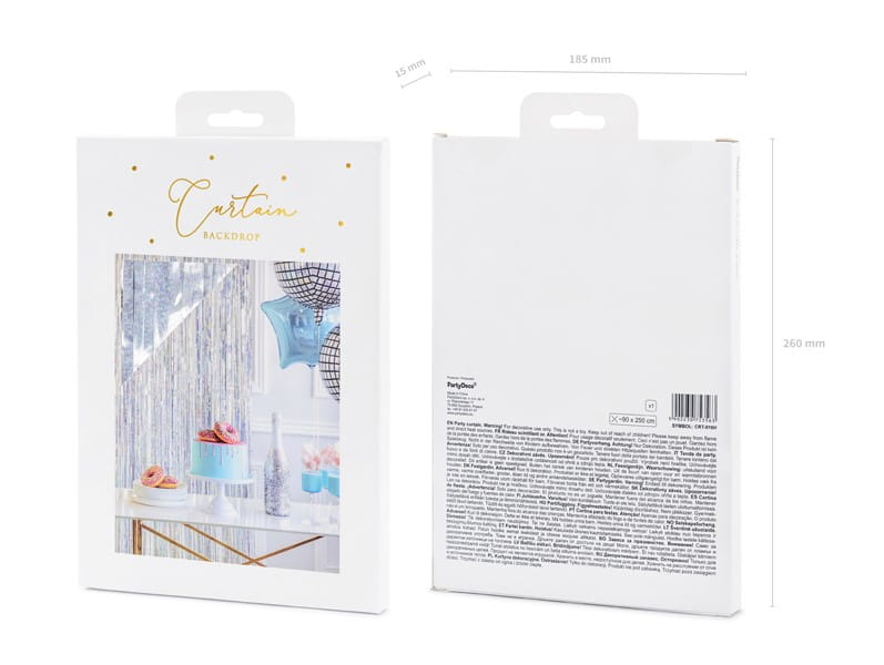 Kurtyna Party, holograficzny, 90 x 250cm. Produkt dekoracyjny wysokiej jakości, idealny na przyjęcia, uroczystości i eventy.