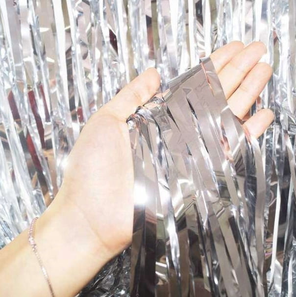 IMPREZOWA KURTYNA LAMETA SREBRNA 90 CM x 250 CM TŁO DO ZDJĘĆ NA DRZWI