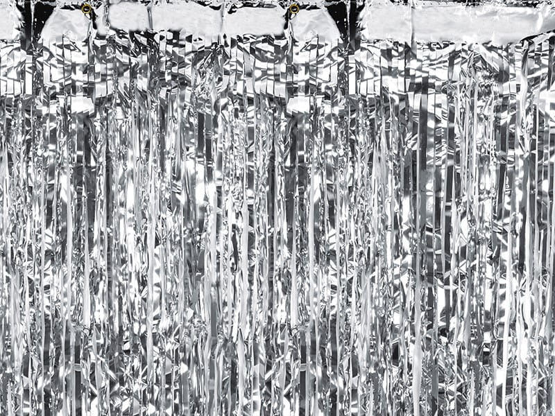Kurtyna Party, srebrny, 90 x 250cm. Produkt dekoracyjny wysokiej jakości, idealny na przyjęcia, uroczystości i eventy.