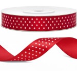 - Czerwona w białe kropki wstążka satynowa doskonale pasuje do dekoracji ślubnych.