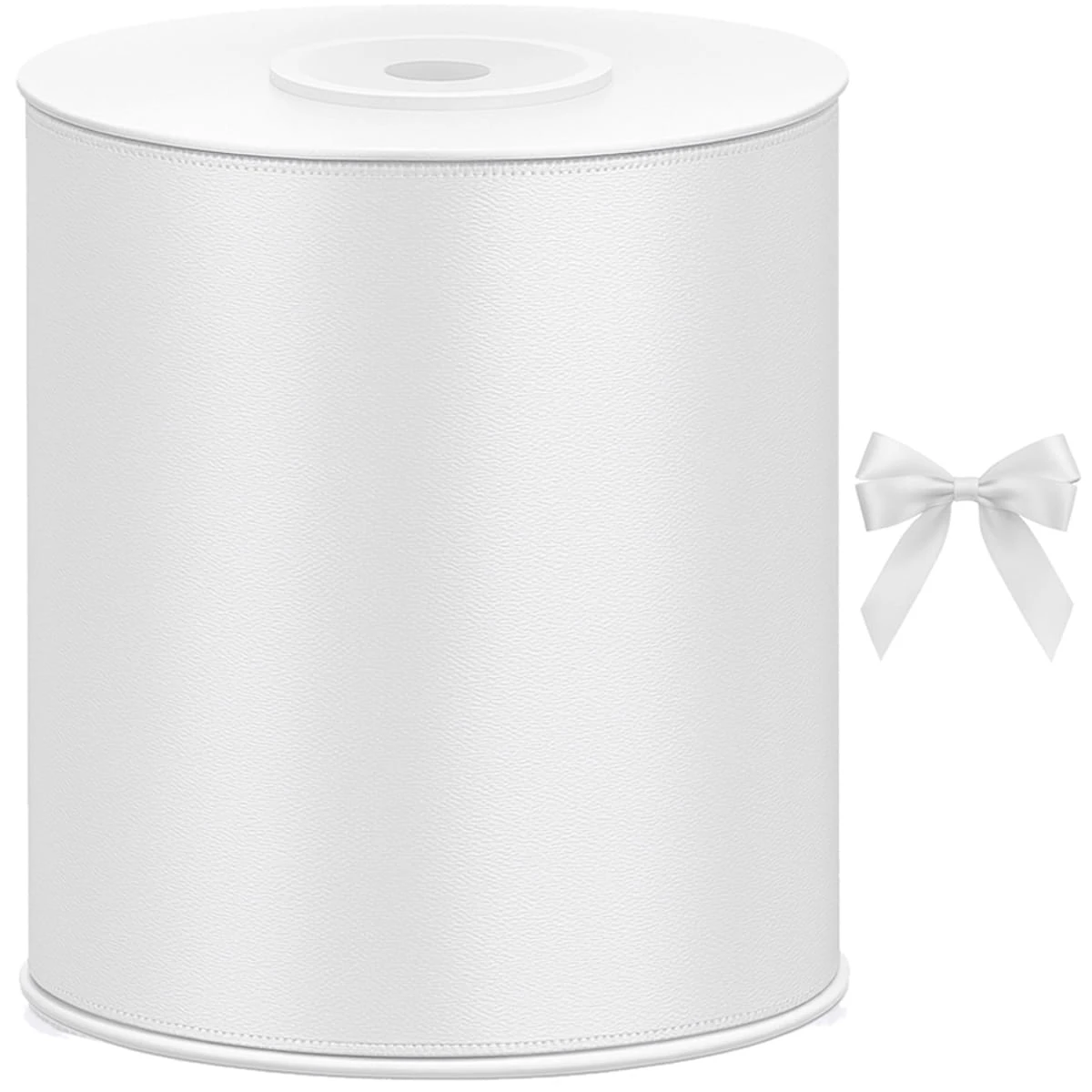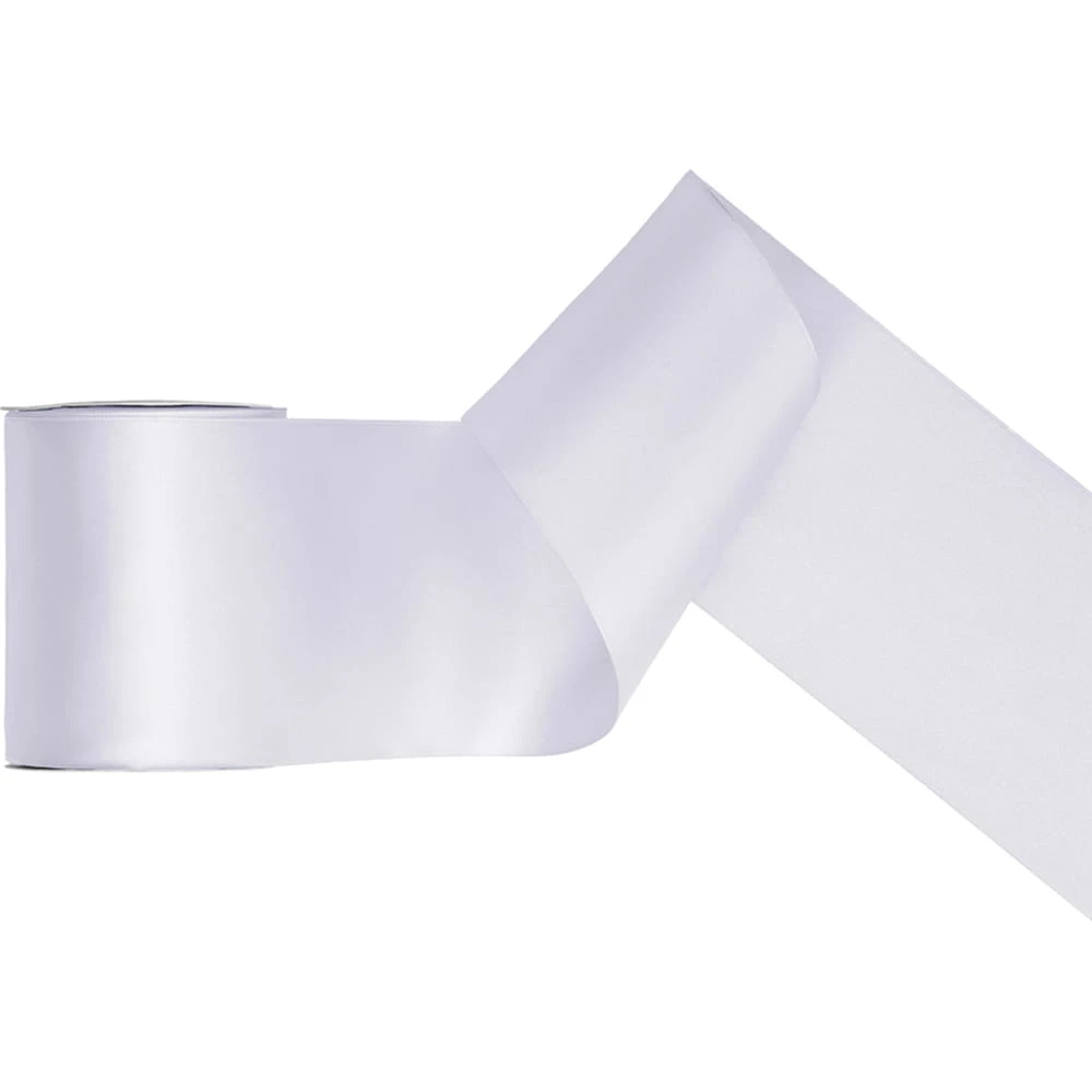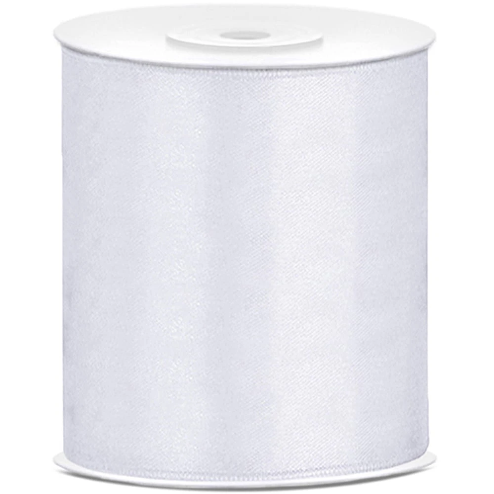 Tasiemka satynowa, biały, 100mm/25m (1 szt. / 25 mb.). Produkt dekoracyjny wysokiej jakości, idealny na przyjęcia, uroczystości i eventy.