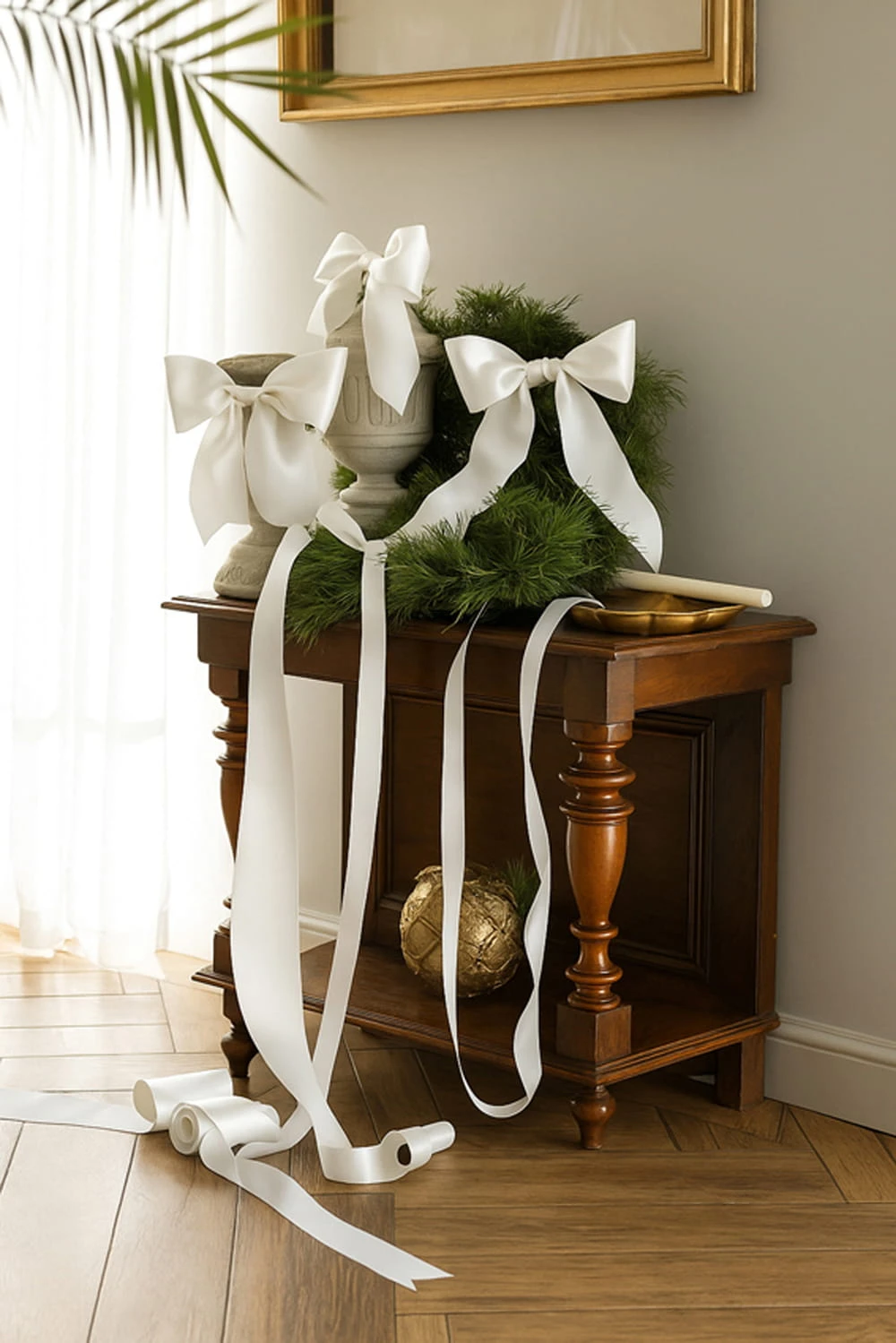PartyDeco Tasiemka satynowa, biały, 100mm/25m (1 szt. / 25 mb.) – dekoracyjny produkt wysokiej jakości