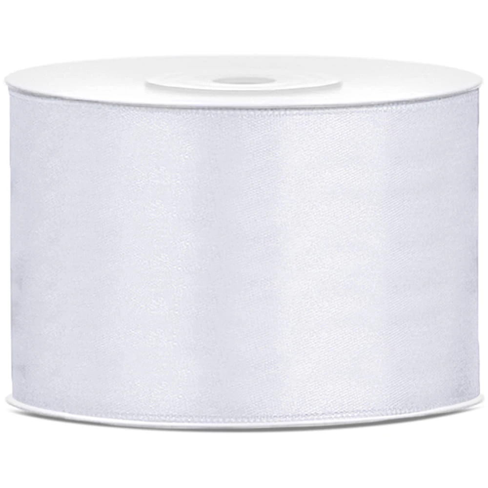 Tasiemka satynowa, biały, 50mm/25m. Produkt dekoracyjny wysokiej jakości, idealny na przyjęcia, uroczystości i eventy.