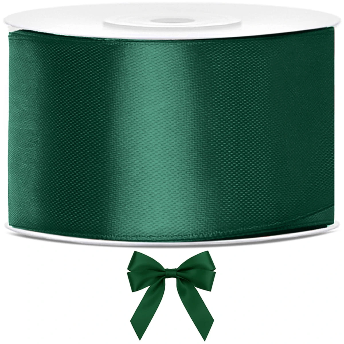 Tasiemka satynowa, butelkowa zieleń, 38mm/25m (1 op. / 1 szt.). Produkt dekoracyjny wysokiej jakości, idealny na przyjęcia, uroczystości i eventy.