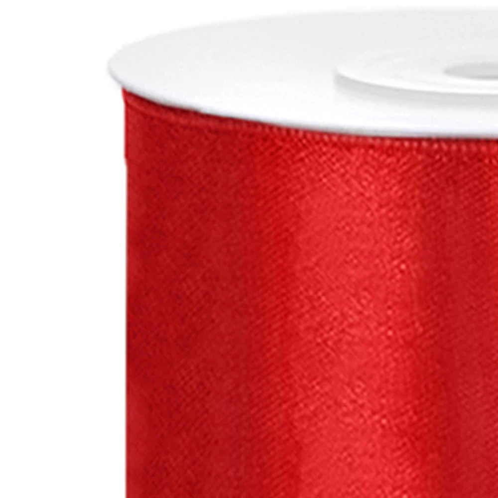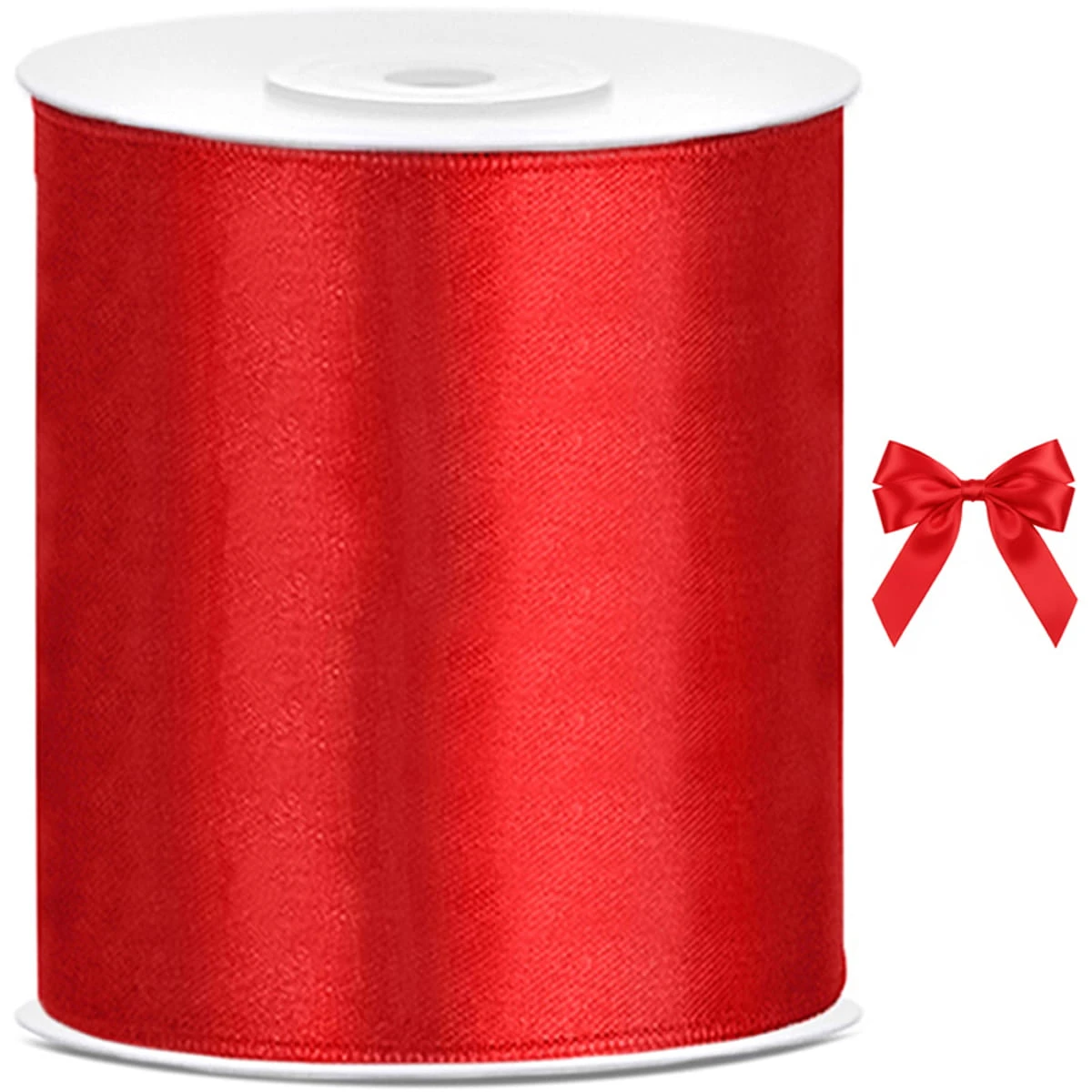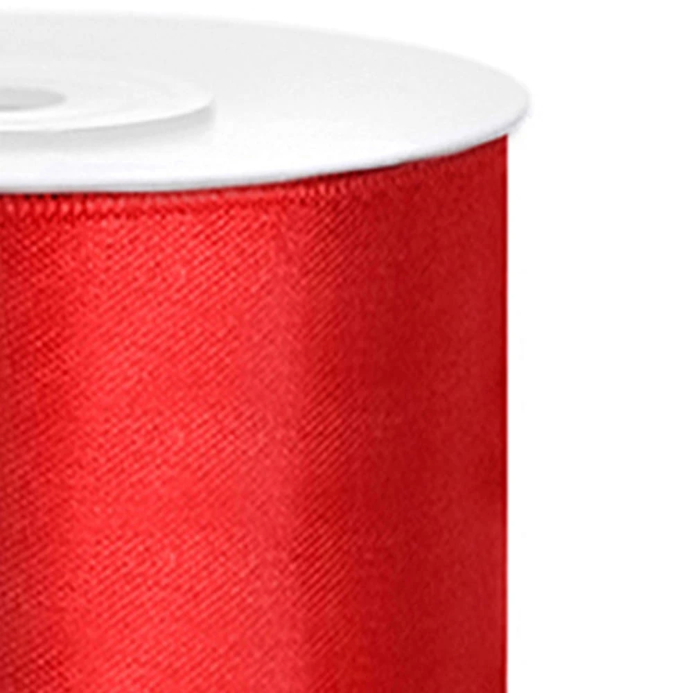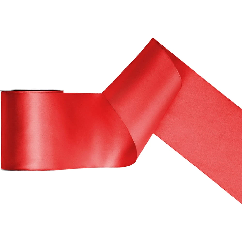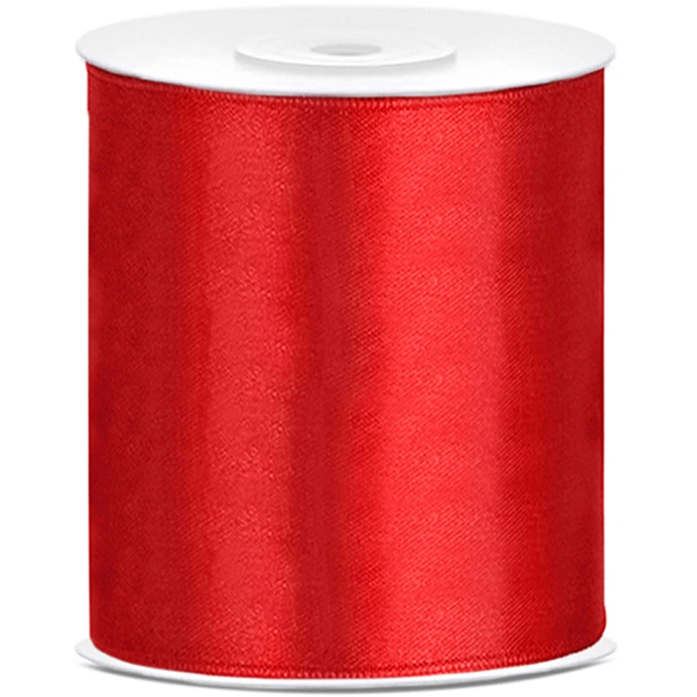Tasiemka satynowa, czerwony, 100mm/25m. Produkt dekoracyjny wysokiej jakości, idealny na przyjęcia, uroczystości i eventy.