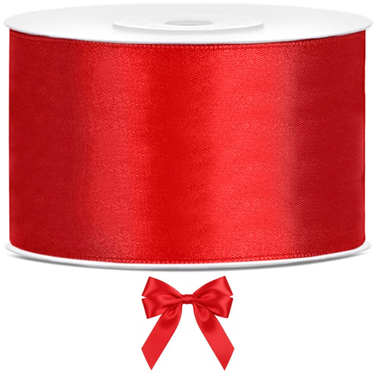 Tasiemka satynowa, czerwony, 38mm/25m. Produkt dekoracyjny wysokiej jakości, idealny na przyjęcia, uroczystości i eventy.