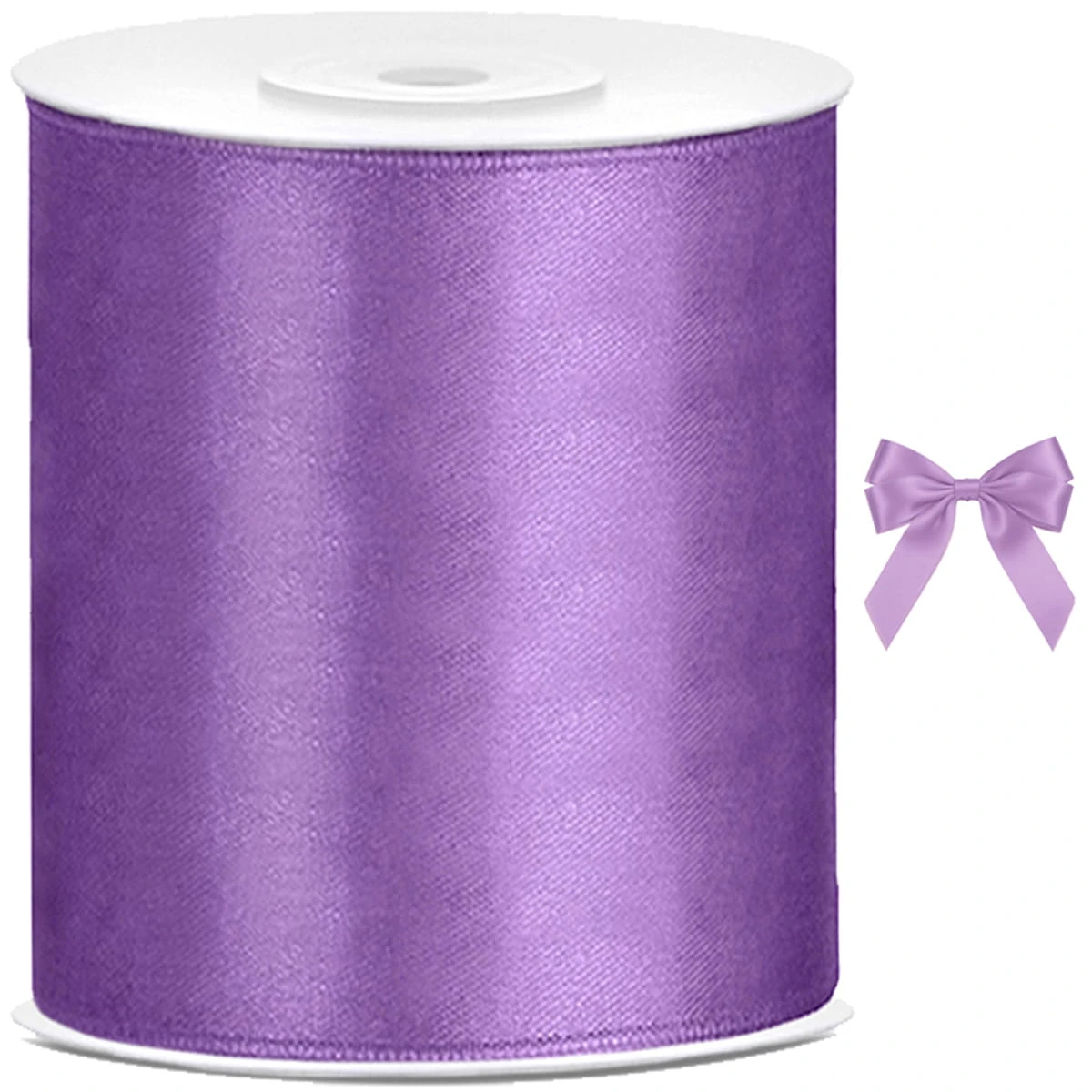 PartyDeco Tasiemka satynowa, lawenda, 100mm/25m – dekoracyjny produkt wysokiej jakości