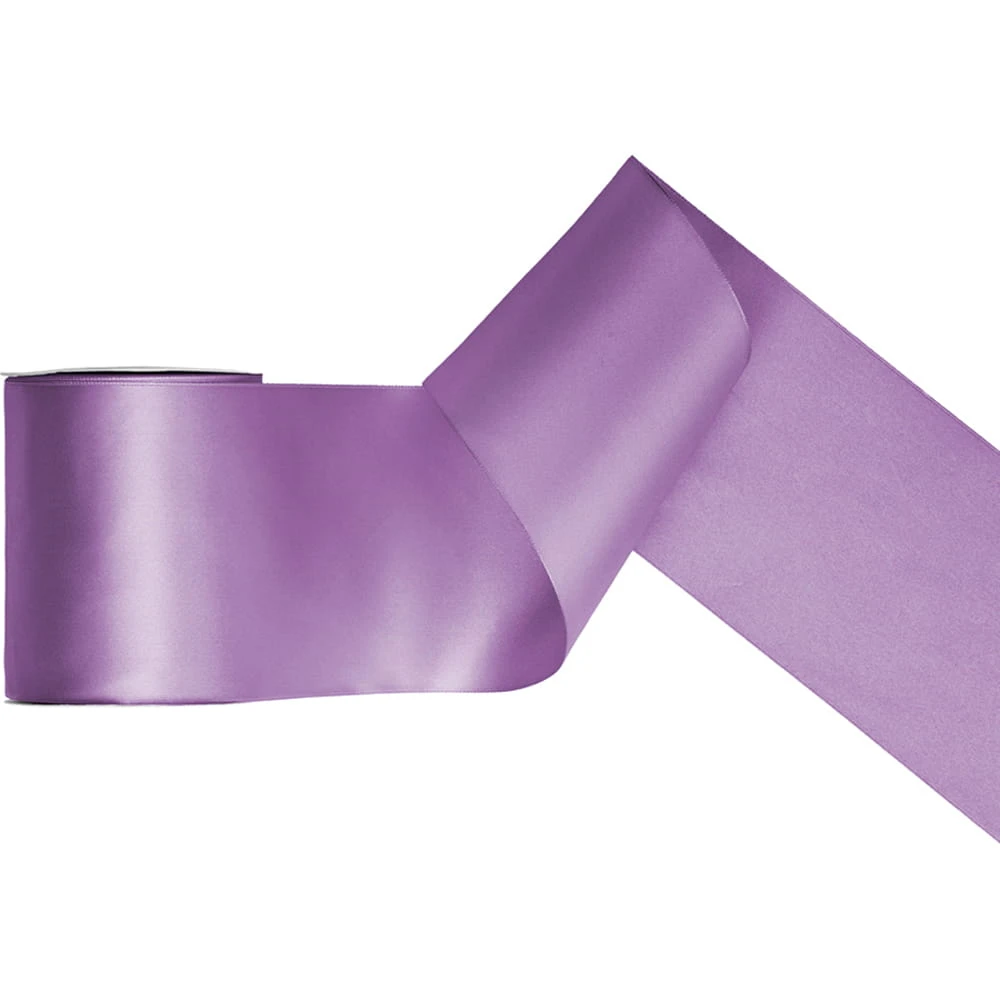 Tasiemka satynowa, lawenda, 100mm/25m. Produkt dekoracyjny wysokiej jakości, idealny na przyjęcia, uroczystości i eventy.