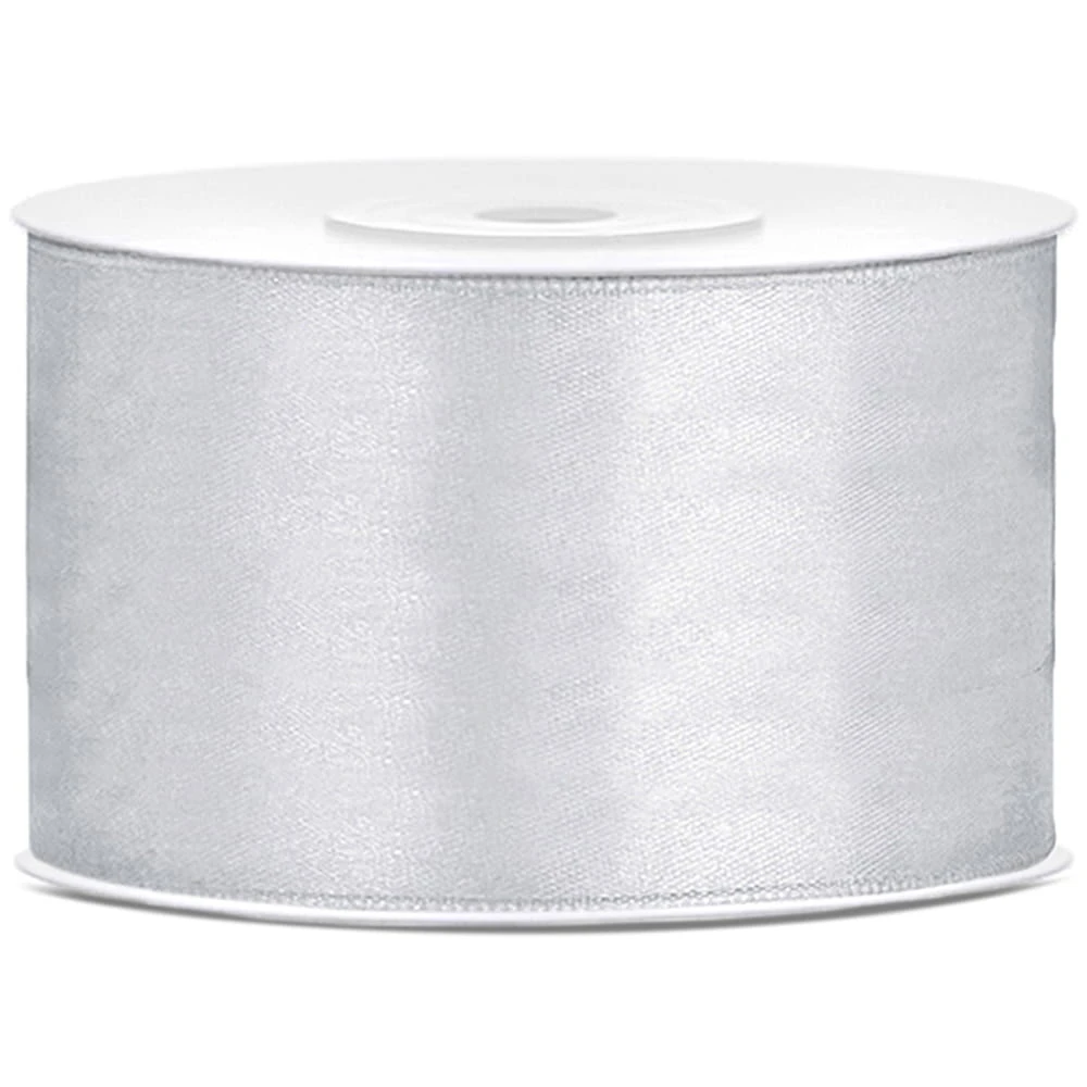 Tasiemka wstążka satynowa srebrna 38mm x 25m