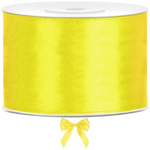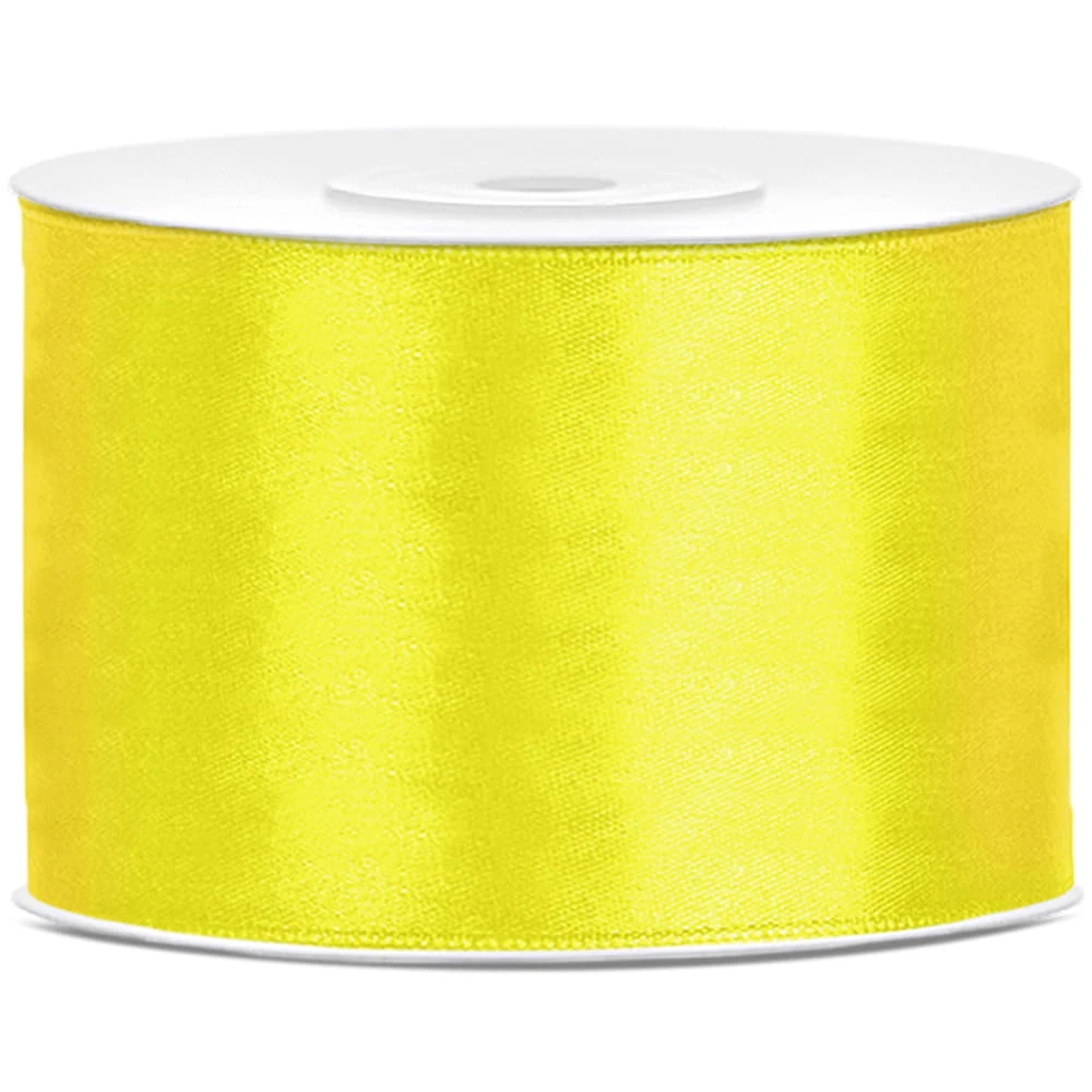 Tasiemka satynowa, żółty, 50mm/25m. Produkt dekoracyjny wysokiej jakości, idealny na przyjęcia, uroczystości i eventy.