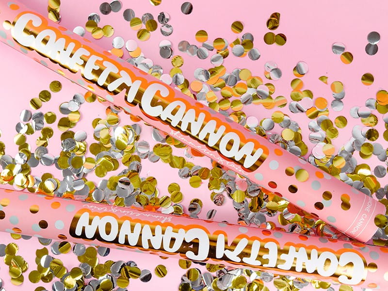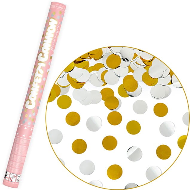 TUBA STRZELAJĄCA KONFETTI ZŁOTE SREBRNE KÓŁKA NA URODZINY ŚLUB WESELE 60 CM