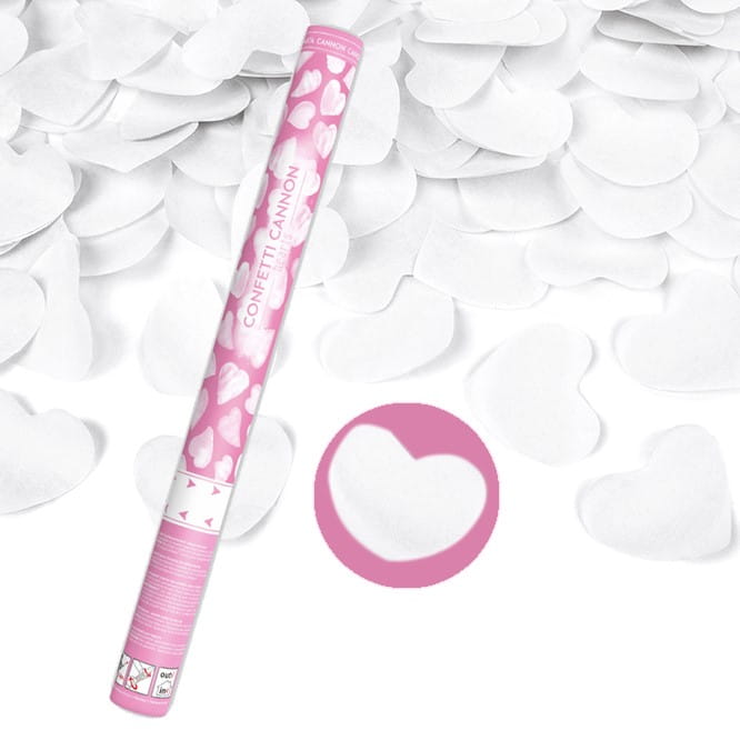 TUBA STRZELAJĄCA KONFETTI BAŁYMI SERCAMI NA ŚLUB WESELE URODZINY 60 CM