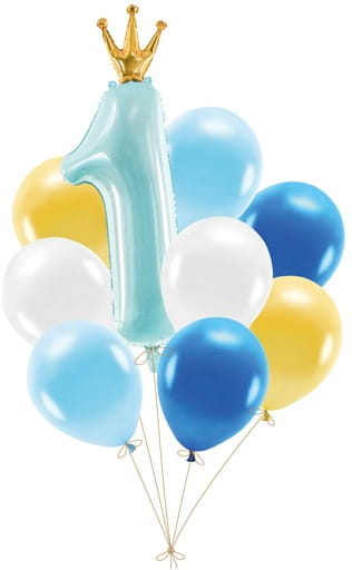 Zestaw balonów Roczek, niebieski (1 op. / 9 szt.). Produkt dekoracyjny wysokiej jakości, idealny na przyjęcia, uroczystości i eventy.