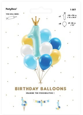 PartyDeco Zestaw balonów Roczek, niebieski (1 op. / 9 szt.) – dekoracyjny produkt wysokiej jakości