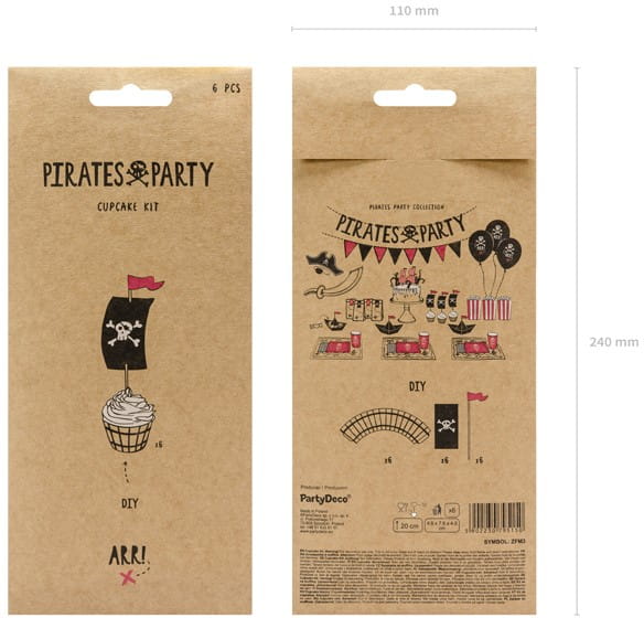 Zestaw do muffinek Piraci (1 op. / 6 szt.). Produkt dekoracyjny wysokiej jakości, idealny na przyjęcia, uroczystości i eventy.